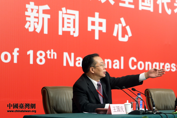 中央對(duì)外宣傳辦公室副主任王國(guó)慶主持記者招待會(huì)。(中國(guó)臺(tái)灣網(wǎng) 王偉 攝)