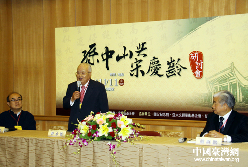 齊鳴秋還透露,為了加強(qiáng)對(duì)孫中山、宋慶齡的研究工作,2012年10月17日,中國(guó)宋慶齡基金會(huì)正式成立了孫中山、宋慶齡研究委員會(huì)。蒞臨研討會(huì)現(xiàn)場(chǎng)的張海鵬教授等多位大陸專家都是該研究委員會(huì)的成員,他們期待在研討會(huì)上與島內(nèi)同行分享自己多年的研究心得以及最新的研究成果。