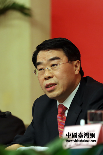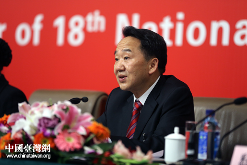 11月11日下午,十八大新聞中心在梅地亞中心二樓多功能廳舉辦中外記者招待會(huì),介紹文化體制改革和公共文化服務(wù)體系建設(shè)情況,并回答記者提問。圖為新聞出版總署黨組書記、副署長(zhǎng)、中央文化體制改革和發(fā)展工作領(lǐng)導(dǎo)小組辦公室副主任蔣建國回答記者提問。(中國臺(tái)灣網(wǎng) 王偉 攝)