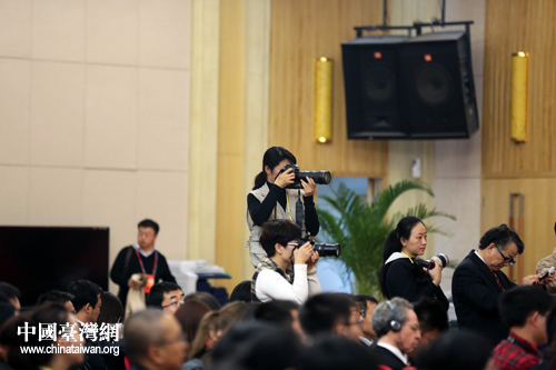 11月11日下午,十八大新聞中心在梅地亞中心二樓多功能廳舉辦中外記者招待會(huì),介紹文化體制改革和公共文化服務(wù)體系建設(shè)情況,并回答記者提問。圖為現(xiàn)場(chǎng)的攝影記者。(中國(guó)臺(tái)灣網(wǎng) 王偉 攝)