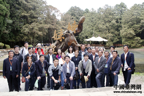 參訪團團在阿里山景區合影留念。(中國臺灣網 于斯文 攝)
