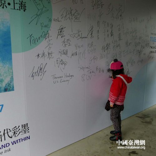 虞蘭因畫展在京開(kāi)幕,小觀眾看板上在簽名留念 (攝影 吳小珊)