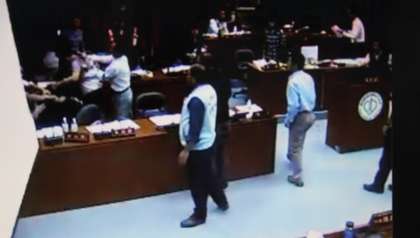 龍潭鄉代表會今日質詢時上演全武行,多人掛彩。(圖片來自臺媒)