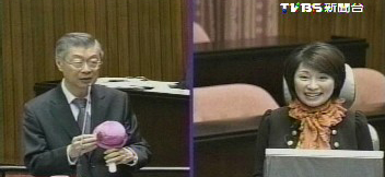 楊玉欣今日的另類質詢難倒了陳沖(左)。來源:臺灣TVBS電視臺