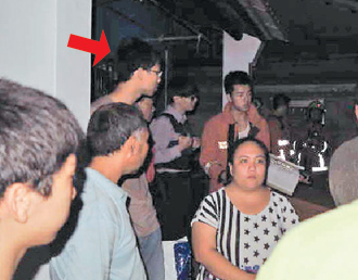 臺(tái)灣清華大學(xué)吳姓研究生(箭頭指處)縱火后,也留在現(xiàn)場(chǎng)觀看。圖片來(lái)源:臺(tái)灣《聯(lián)合報(bào)》