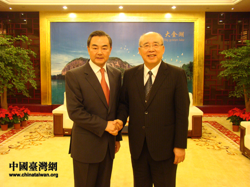 中國臺灣網11月20日福建三明消息 中共中央臺辦主任王毅20日在福建三明會見了中國國民黨榮譽主席吳伯雄,雙方就推進兩岸關系發展交換了意見。