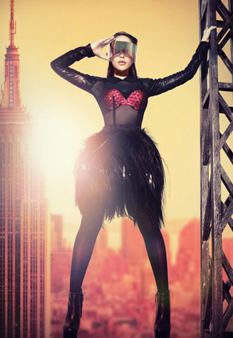 新專輯蕭亞軒化身“愛(ài)的隊(duì)長(zhǎng)”,腳踩18公分高跟鞋站在鋼索上。(來(lái)源:臺(tái)灣《中國(guó)時(shí)報(bào)》)