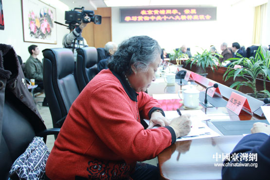 北京市黃埔軍校同學(xué)會(huì)副會(huì)長(zhǎng)姚德垚在座談會(huì)上講話。(中國(guó)臺(tái)灣網(wǎng) 李丹 攝)