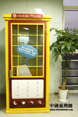 需要接打電話的讀者可以隨時(shí)使用帶有隔音效果的電話亭。(中國(guó)臺(tái)灣網(wǎng) 馬迪 攝)