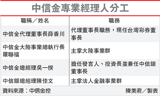 “中信金”經理人分工表(圖片來自臺灣《經濟日報》)