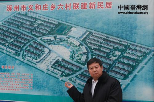 義和莊鄉黨委書記傅偉輝講解規劃圖。(中國臺灣網 焦源源 攝)