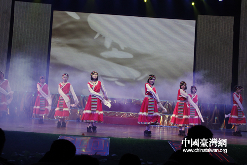 在西柏坡中學“感恩的心——元旦聯歡會”上,同學們表演的藏族舞蹈“歡樂的海洋”(中國臺灣網記者 蕪同 攝)