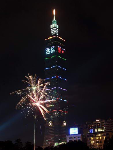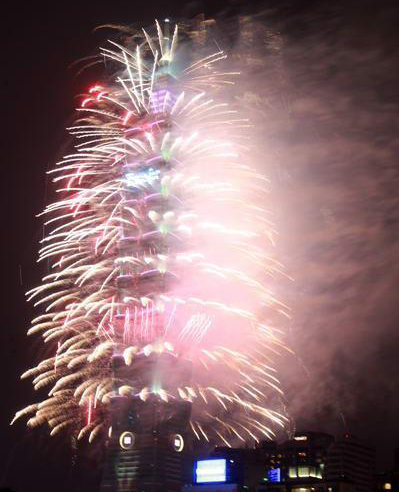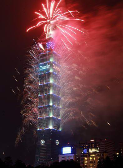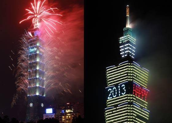 和去年一樣長達188秒的2013臺北101跨年煙火秀精彩登場,估計有85萬人到場觀賞。圖片來自臺灣今日新聞網(wǎng)