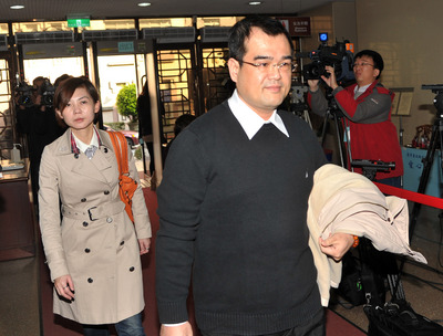 臺北地院21日再次開庭審理林益世被控貪污案,林益世(右)與妻子彭愛佳(左)一起出庭。(圖片來源:臺灣今日新聞網)