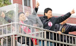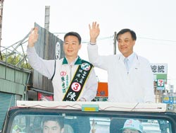 國民黨“立委”候選人顏寬恒(左)23日在父親顏清標陪同下,展開密集車隊掃街拜票。圖自臺灣《中國時報》