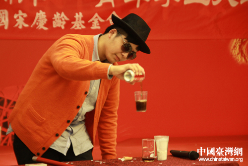 臺灣元智大學彭澤輝的魔術表演雖然破綻百出,但臺下的觀眾依然看的津津有味。(中國臺灣網 孟雅詩 攝)