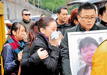 戎祥過世,妻子賴芊合難以置信,看著他的遺照泣不成聲。(圖片來源:臺灣《中國時報》)