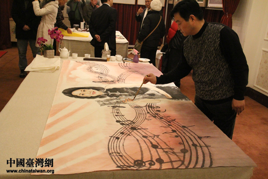 某知名畫家在用筆尖勾勒出音樂的旋律。(中國臺灣網 何建峰 攝)