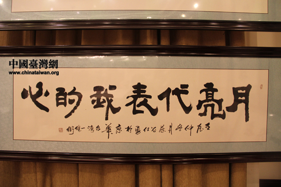 書法家作品“月亮代表我的心”。(中國臺灣網 何建峰 攝)