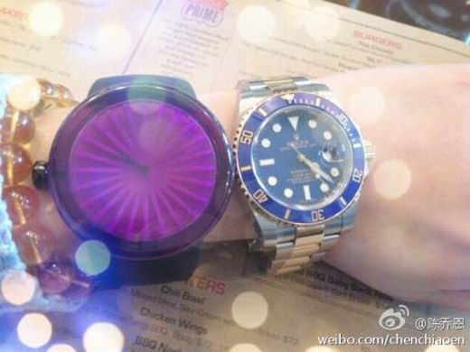 陳喬恩2月28日在微博曖昧說:“醒在早上6點(diǎn),我想貓,也想你。”并上傳左手腕戴了一紫一藍(lán)兩支手表的照片,眼尖網(wǎng)友抓包,霍建華也曾公開戴過該款手表,陳喬恩有可能戴的是霍建華手表,或是買對表。
