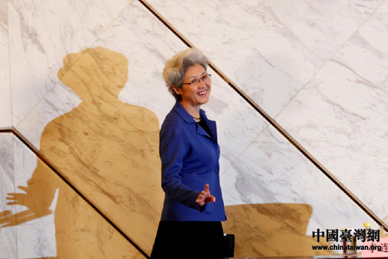 十二屆全國人大一次會議新聞發(fā)言人傅瑩就會議議程、人大工作向中外記者作了介紹。(中國臺灣網(wǎng) 何建峰 攝)