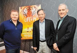 《少年P(guān)I的奇幻漂流》編劇戴維梅吉(左起)、導(dǎo)演李安、剪接師提姆史奎爾斯暢談拍片過程。(圖片來自臺(tái)媒)