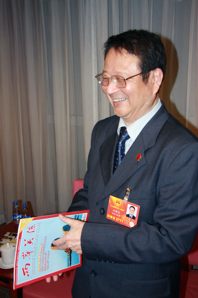 十二屆全國人大一次會議期間,臺灣團團長、全國臺聯會會長汪毅夫在代表駐地接受了記者的專訪。記者注意到,汪會長出席許多重要活動都喜歡穿傳統的中式立領服裝,更顯中華傳統文化特色。汪會長說個人偏愛帶有中華文化元素的事物。