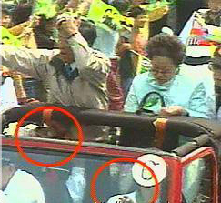 兇手共開兩槍,一槍擊中呂秀蓮的膝蓋,一槍擦過陳水扁的腹部。圖片來自臺(tái)灣今日新聞網(wǎng) 第1頁(yè)第2頁(yè)第3頁(yè)第4頁(yè)第5頁(yè)第6頁(yè)第7頁(yè)第8頁(yè)第9頁(yè)第10頁(yè)第11頁(yè)第12頁(yè)第13頁(yè)