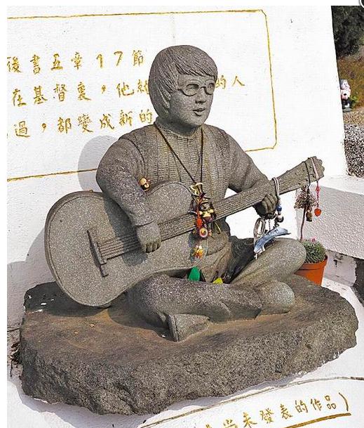 雨生園內有他彈吉他的塑像及未發表作品。(圖片來自臺媒)