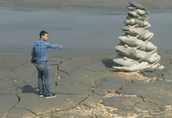 平常只頂端兩只露臉,干旱時九蛙全亮相。圖片來自臺灣媒體