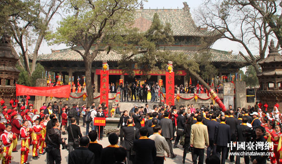 “海峽兩岸交流基地授牌暨關公祖廟圣像赴臺巡游活動啟動儀式”在山西省運城解州關帝廟舉行。(中國臺灣網 李典典 攝)