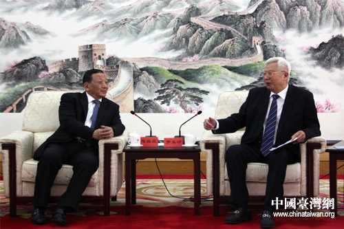 全國(guó)政協(xié)原副主席、中國(guó)和平統(tǒng)一促進(jìn)會(huì)名譽(yù)會(huì)長(zhǎng)羅豪才(右)在京會(huì)見了由曾福應(yīng)(左)率領(lǐng)的菲律賓中國(guó)和平統(tǒng)一促進(jìn)會(huì)訪問(wèn)團(tuán)。(中國(guó)臺(tái)灣網(wǎng) 郜利敏 攝)