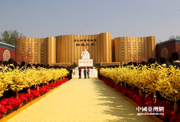 三月三,拜軒轅。12日上午,癸巳年黃帝故里祭拜大典上午在河南新鄭隆重舉行。來自18個國家和地區的約8000名炎黃子孫齊聚新鄭黃帝故里景區,追根溯源,念祖思親,共同祭拜中華民族的共同始祖軒轅黃帝,并祈福中華民族國泰民安,繁榮昌盛。(中國臺灣網 普燕攝)
