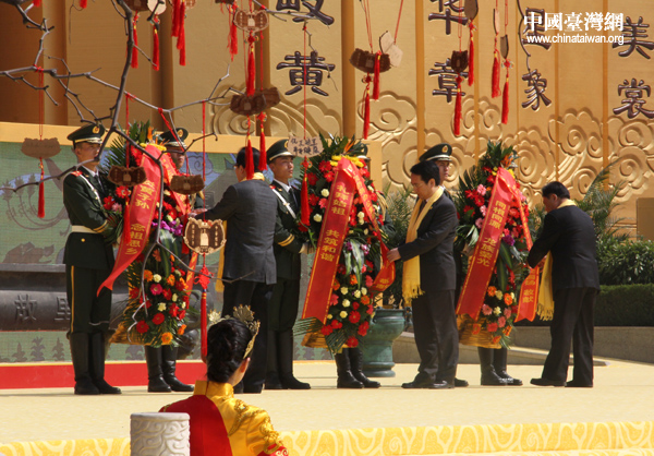 各界人士代表依次向黃帝敬獻花籃、敬香、鞠躬行禮。(中國臺灣網 普燕攝)