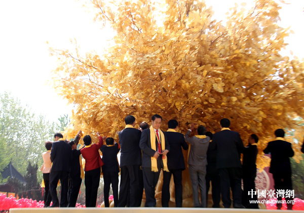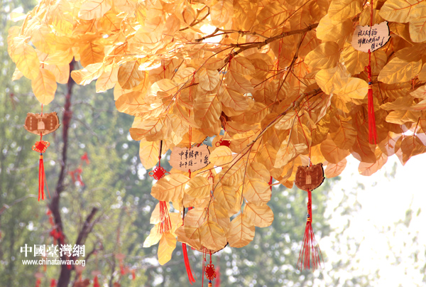 祈福中華。各界人士將寫有祈福心愿的祈福牌懸掛到景區的祈福樹上。(中國臺灣網 普燕攝)