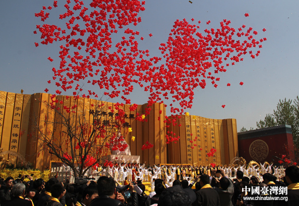 天地人和議程中,來自兩岸四地的四位少年手執氣球,引領現場四周數千彩球順勢騰飛。(中國臺灣網 普燕攝)