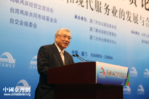 臺灣兩岸共同市場基金會董事長詹火生發表演講。(中國臺灣網 王思羽 攝)