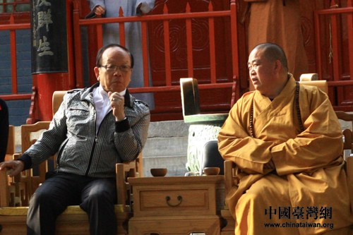 觀看演出時(shí)蔣孝嚴(yán)與少林寺方丈釋永信交談(中國臺(tái)灣網(wǎng) 朱煉 攝)