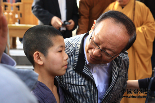 蔣孝嚴(yán)與參加表演的小僧人交流(中國臺(tái)灣網(wǎng) 朱煉 攝)