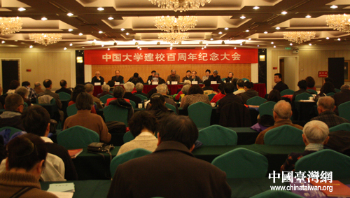 中國臺灣網4月14日北京消息 由孫中山先生于1913年創辦的中國大學4月13日在北京舉行建校100周年紀念活動。51位平均年齡在80歲以上的中國大學老校友從各地趕來參加紀念大會。