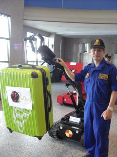 中國臺灣網4月16日消息 據臺灣“中廣新聞網”報道,日前臺灣高鐵列車遭人放置行李箱爆炸物,震驚社會。通常,不論軍方或警方移除爆裂物時,都必須全副武裝,過程也得小心翼翼,就怕有個閃失。高雄正修科技大學電子系師生成功研發一套移除爆炸物的機器人,操作人員可以在800米的距離范圍內,遙控機器人夾起30公斤以內的物品到安全的地方,這項發明已經在臺灣申請并取得專利。