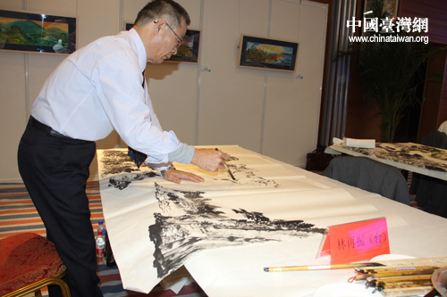 臺灣書畫家林再振在進行創作。(中國臺灣網 郭慶娜 攝)