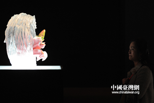 4月23日,中國美術館,《琉璃之人間探索——楊惠姍、張毅聯(lián)展》,觀眾不禁伸手感觸出神入化的琉璃作品。 (中國臺灣網(wǎng) 田云鵬 攝)