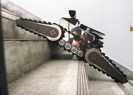 “NTNU CIR-I”的履帶式機器人,特色是不必人為操縱,可以自主偵測地形與判斷行走路線。(圖片來自臺灣《中國時報》)