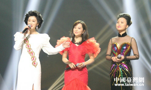 三位來(lái)自民間的演唱者演唱鄧麗的代表作,她們分別穿著鄧麗君不同時(shí)期的代表性服裝登臺(tái)獻(xiàn)唱。(中國(guó)臺(tái)灣網(wǎng) 郭瑩瑩 攝)