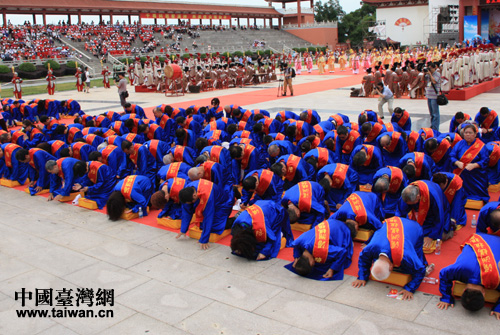 信眾代表行三跪九叩之禮。(中國臺灣網 樊玉嬌 攝)