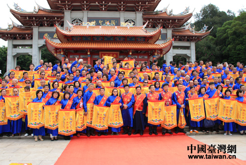 臺灣179家媽祖宮廟信眾代表與媽祖祭祀大典主祭人合影。(中國臺灣網 樊玉嬌 攝)