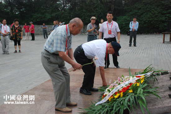 6月17日上午,在中國壯士群雕廣場,黃埔軍校同學會會長林上元,臺灣退役上將、中華戰略學會理事長王文燮,以及來自海峽兩岸的黃埔親屬、黃埔代表一起,為抗戰英烈雕像敬獻了花環,并默哀致意。(中國臺灣網 李丹 攝)