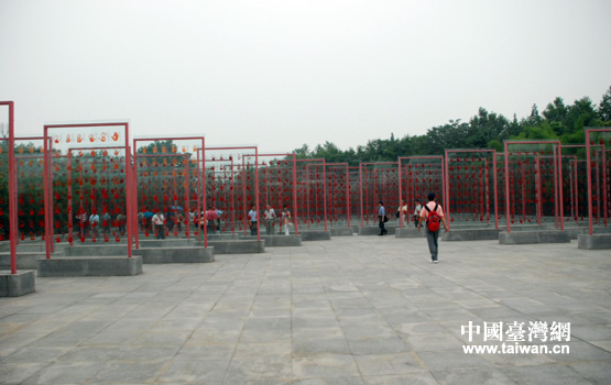 抗戰老兵手印廣場,手印碑林呈勝利的“V”字型。重重疊疊的手印,形成排山倒海之勢,這就是民族力量的真切體現。(中國臺灣網 李丹 攝)