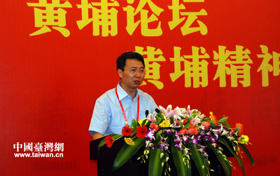 黃埔軍校同學會秘書長杭元祥主持論壇。(中國臺灣網 李丹 攝)